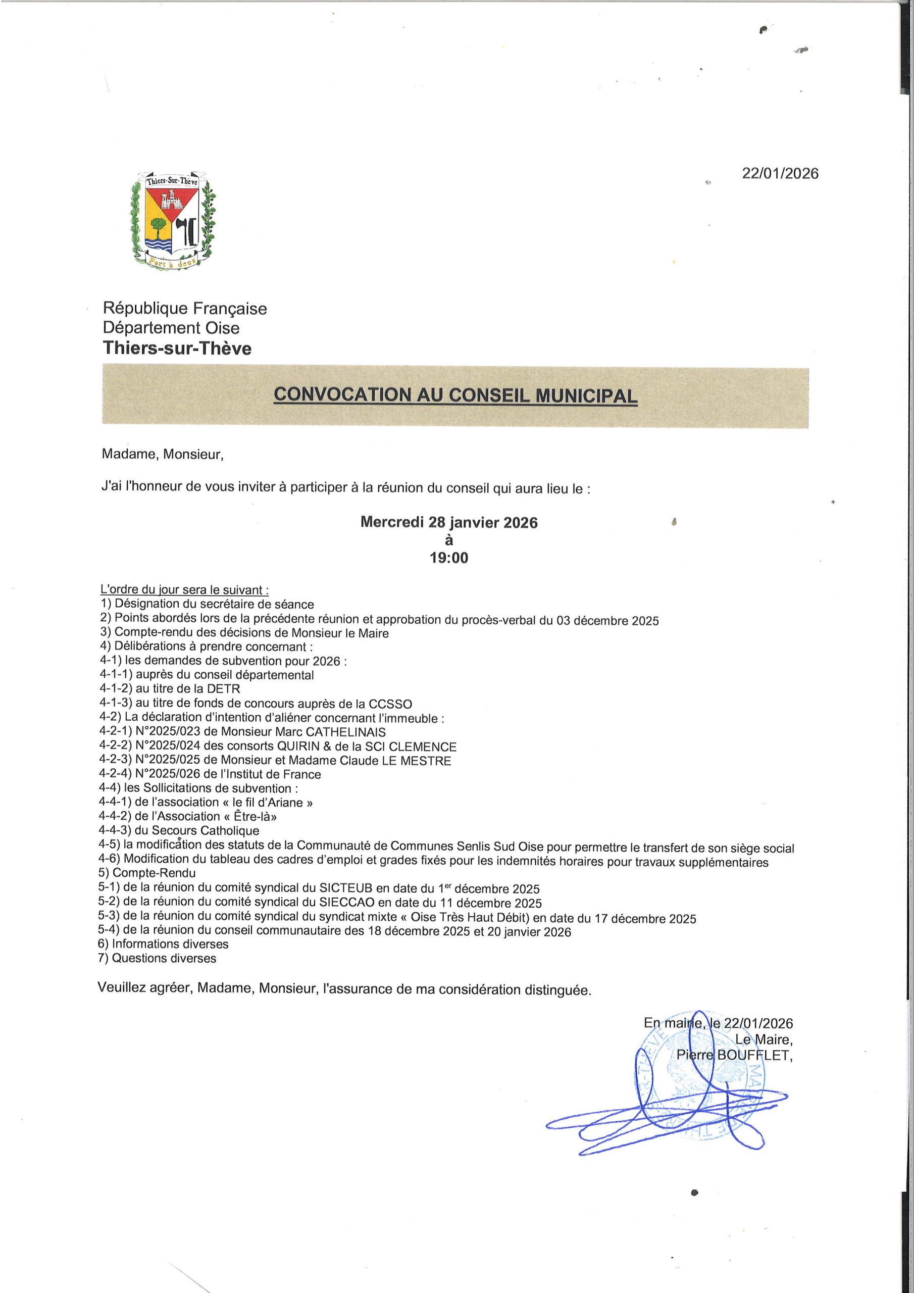 RÉUNION DU CONSEIL MUNICIPAL – 28 JANVIER 2026
